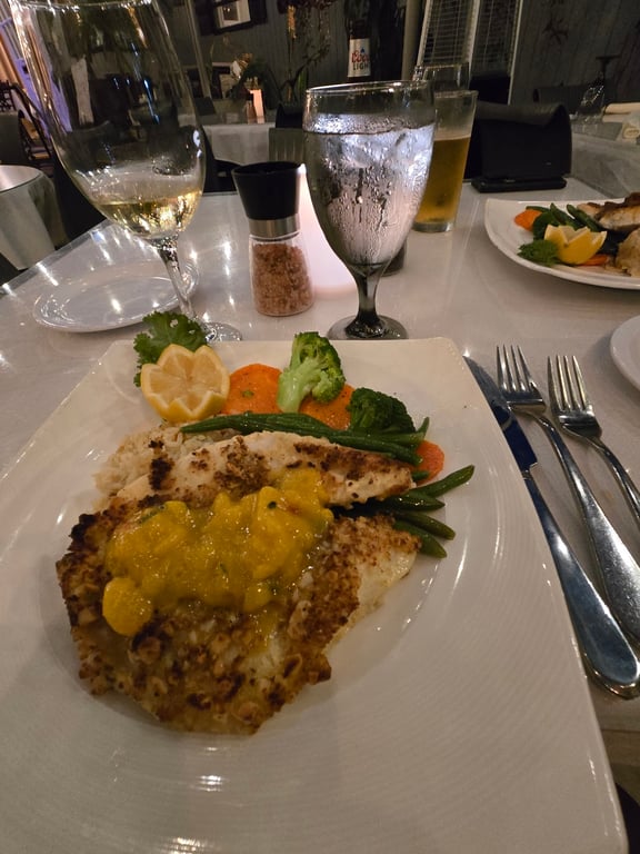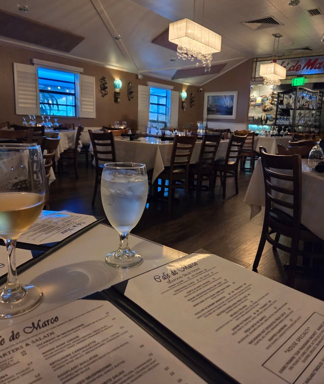 "Cafe de Marco was an amazing find. We were searching for a restaurant to celebrate our anniversary, and it was perfect. The waiter made great recommendations for their specials, and his service was above and beyond. The special was Tripletail with Mango sauce which was delicious. Afterwards of course dessert was recommended, even with being full we had The Cafe Puff. Sadly to say we devoured it. Definitely indulge in this dessert. We actually thought the waiter was joking when he told us he would give us half and put the other half of the dessert in the freezer. No joke, we enjoyed the rest the next day. Definitely worth visiting. We will when we return to Marco Island."