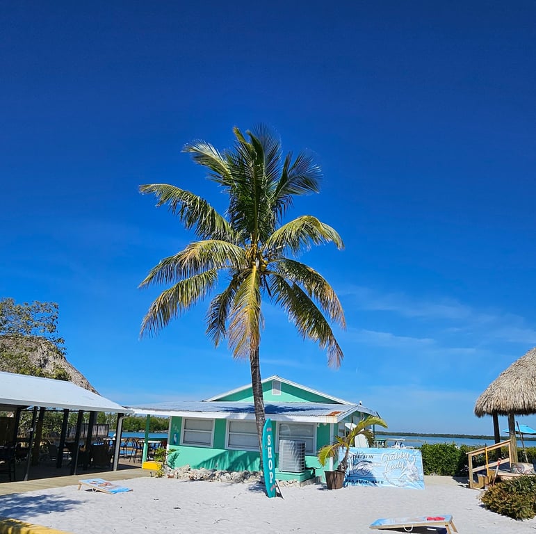 "This place is a gem! Located next to the water, the views are great along with the island like atmosphere. Service is fantastic, and there are 2 types of seating. You can sit in the outdoor restaurant area or out in the sand at large picnic tables by small band stage. The live music was top-notch while enjoying the food. My recommendations are the crab cake, It's delicious!"