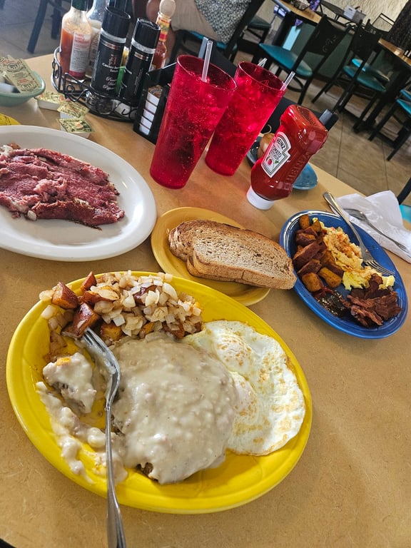 "So very disappointed. We waited 25 minutes to get in with two people. They were polite and thanked us for waiting. The food was all cold. You couldn’t even melt the butter on the toast. Ordered over medium eggs but they were runny- and cold. None of the food was beyond warm- and that was the hash browns brought out after they forgot them. Do not waste your time or money."