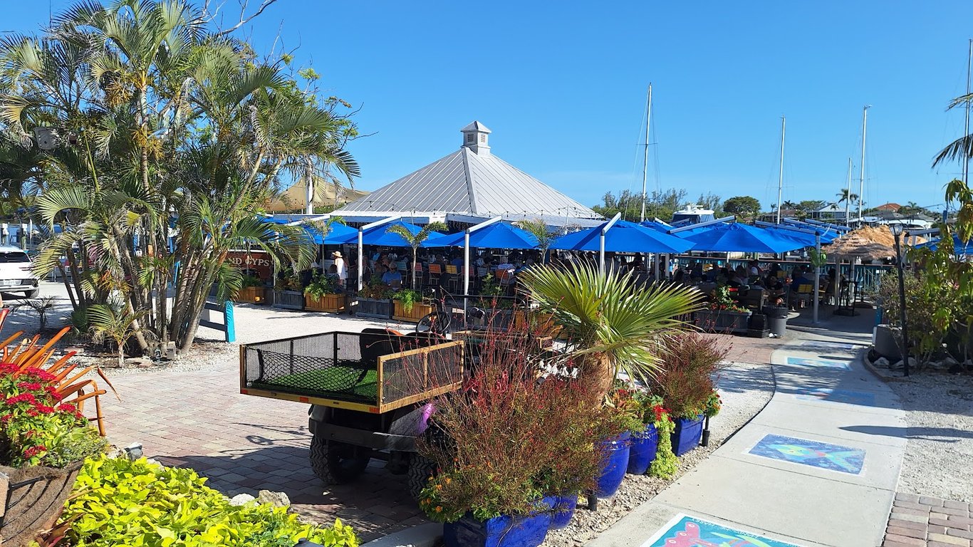 "We love coming here for the vibe of being outside, on the water and good food! We started with onion rings (must get for a group). Crunchy and great aioli to dip with. The mahi mahi grilled sandwich was awesome and was able to opt for salad over fries. The fried grouper sandwich was the best fish sandwich ever! The ribs were also tasty even though the appearance wasn’t as great! The service was great! He was funny and he took care of our every request! Get there early always crowded! Fun gift shop too! Plenty of parking!"