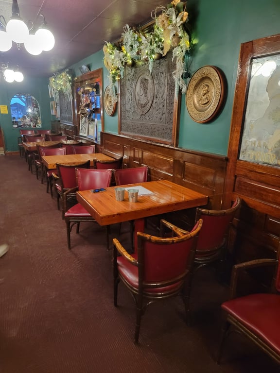 "The restaurant has a bar area and a separate L shape restaurant. As well, they have 3 separate patios. The decor is heavy dark wood, looks old fashioned. The menu is placed on an aisle and presented by the server. Many fish and seafood items as well as red meat. Food is fresh and good (see photos) although some of the dishes are very basic (the Buffalo shrimp are 4 shrimp sprinkled with regular hot sauce)."