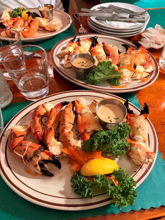 "We arrived at a weird time I think 3:30pm in a Sunday in January and they said they weren’t opening the outside until 4pm So we put our names down on the reservation list and walked around town for a bit. We came back and were seated at a table Right by the water. They were more than happy to fry up the fish fillets we brought in a bag of ice from our afternoon fishing trip for a price. They turned out delicious. Everything was great. We had Grouper Balls and Fried Calamari for apps. Stone crabs and the Grouper special were great and the kids had hot dogs from the kids menu which they liked. They offered Craft local beer which was lovely too. Our waitress Morgan really made all the difference she was very attentive and made sure we were taken care of."