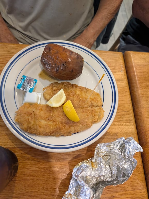 "Low key old Florida vibe. We sat at bar with bartender Vinny. Very efficient and knows how to make a good drink. Clean, fresh cut fruit in every drink. Asked for his recommendations on the menu and he was spot on. Homemade salad dressings all excellent, coconut, shrimp delicious, and the fresh catch triple tail fish was awesome! This is our new go to!"