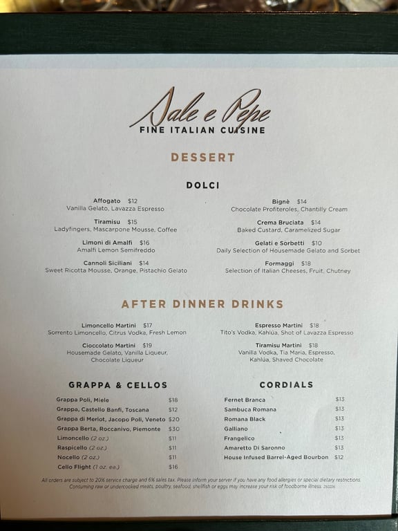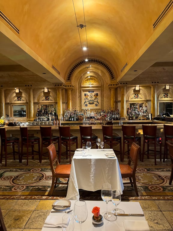 "Absolutely top notch service provided by Jose and his team. The food, service and ambiance made for the perfect date night without the children. The outdoor patio was laced with heaters and firepits and blankets were offered as well. This was our first time visiting but we will certainly be back soon! Ca del Bosco sparkling with caviar and crudi Romana salad Altesino Rosso with Ragu and cacio e pepe Eggplant parmesan, polpo, broccolini Flan/creme brulee/Panna cotta dessert"