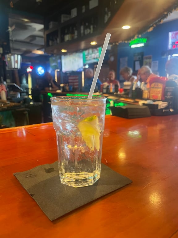 "Christmas Day 2024. We stopped in for lunch and found a lively and friendly staff as well as lots of friendly locals. This is a cool dive bar with great bar food and cold drinks. The menu is long with lots of specials. Today was a Turkey dinner and since it was Wednesday bbq ribs as well. W/o ordered some raw oysters and the group basket and both were delicious.. Up to this point I had found the people on the beach and street not very friendly. I guess they were tourists. Some people like touristy place but I like the out of the way places where locals hang out. Never fails you meet some interesting folks. Highly recommend and will return Urban Cowgill December 2024"