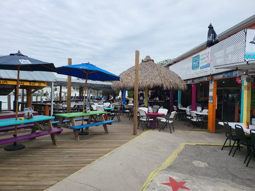 "Really fun place to go and experience. Good live music - traditional 70s, 80s, 90s and some older and newer stuff like new country, not the stuff the younger generation listens to today, at least not this day. Was a bit disappointed in the grouper sandwich because it was really thin grouper. To be a good grouper sandwich it has to be really thick or all you taste is bread and condiments. Everyone raved about it in reviews but if you're going to get it, don't get the sandwich, just get the grouper it's blackened taste was good. Thr fries were luke warm not hot. The waitress was great. Oh, note that they're now charging a whopping 3% fee for credit cards and the costs are already high. I don't know why we put up with such high costs and fees. People still just seem to spend money like it grows from trees. It's loud there, but if you like a crowded, loud, very active place on a Sunday this is it. A LOT of drinking and parking can be difficult unless you're willing to walk a ways and park on side of street/road which is okay. Good luck getting a table if you don't go early before they open or go later like 3 pm. Overall, we had fun but was NOT inexpensive for what we got."