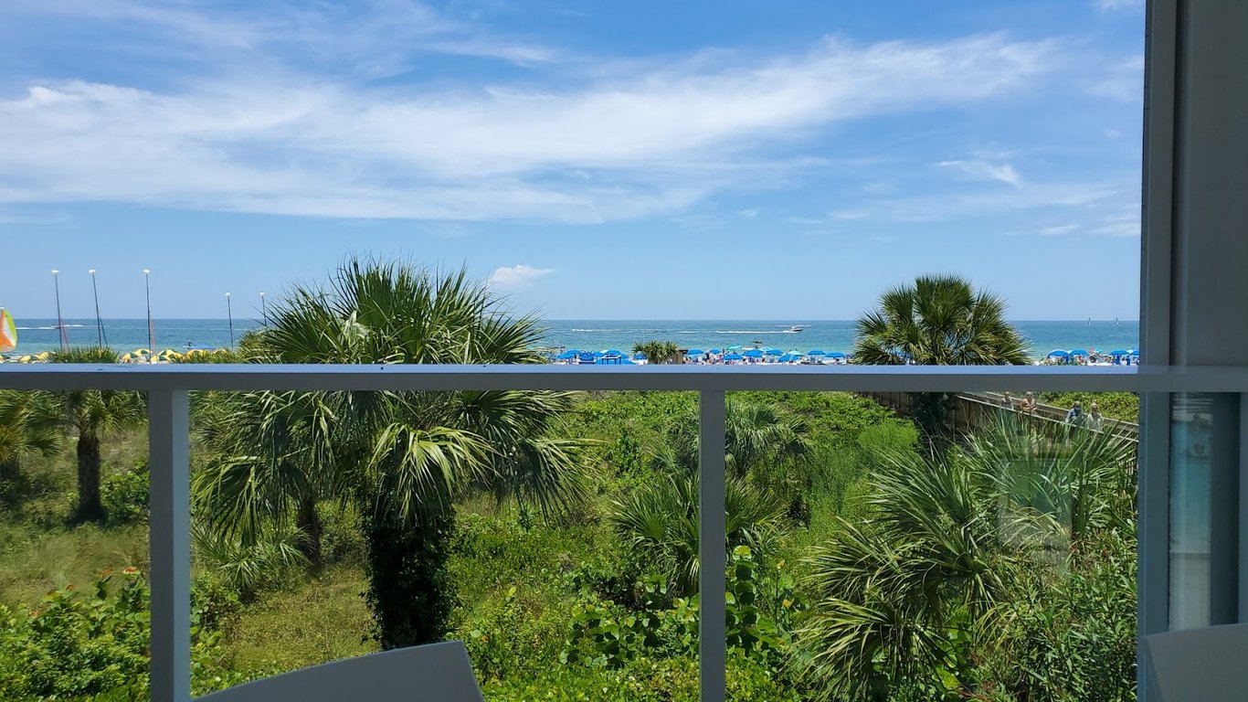 "Was very windy and chilly when we visited, our out of town friends wanted to have a cocktail overlooking the ocean, bad choice, the gulf is off in the distance and too far to hear. Service was very slow and an employee keeps visitors from walking onto the sand if your not staying at the hotel, they say it keeps people from using their parking lot to only use the beach, and I do understand, but maybe they can validate parking for guests spending $7.50 for a pint of domestic beers and let us put our feet in sand and take a photo or two. Don't know if we'll visit again because I'm handicap and the stairs are rough for me."