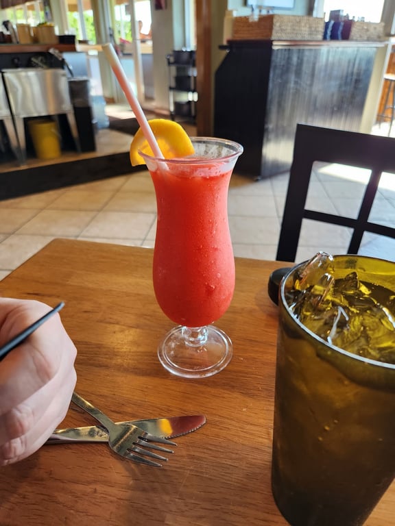 "Great view of the beach and sunset. The food was excellent and drinks were awesome as well. Drew was an awesome server and took great care of us."