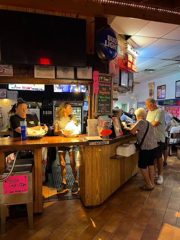 "This place is pretty darn good for no table service. You walk in, place your order at the bar, find a seat and they call your name when food is ready. Prices are really reasonable. Wings are better than the Anchor Bar in Buffalo! Flamed broiled steaks and other yumminess! Staff are friendly and always hustling."